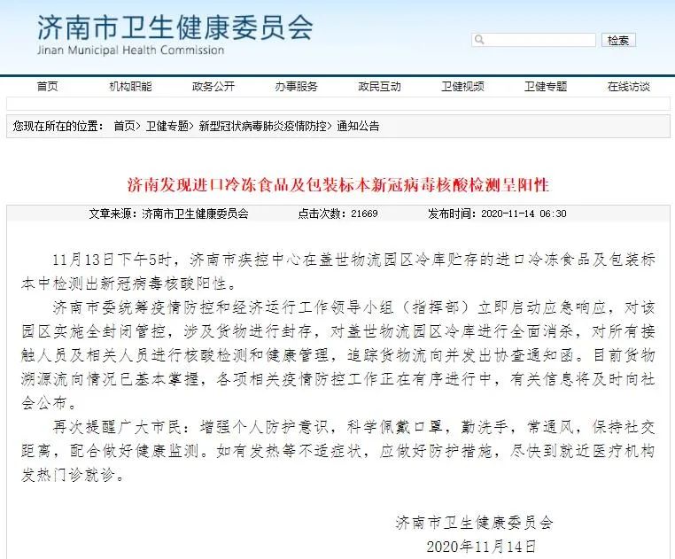 13日下午,济南卫健委宣布,当地疾控中心在一家物流园冷库中的进口冷冻食品及包装上检出新冠病毒核酸阳性。