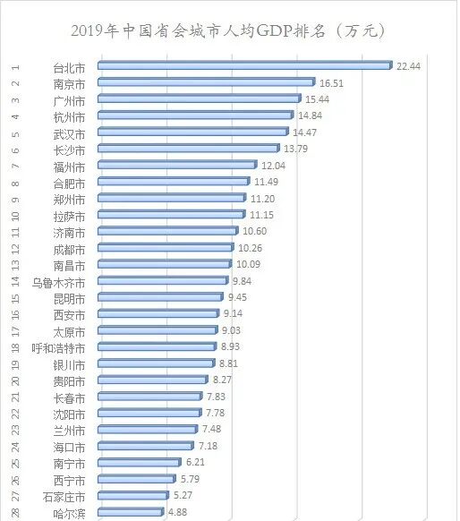 最重要的是,2019年全市人均GDP为4.88万元,居于全国省会城市人均GDP排名倒数第一;全市城镇居民家庭年人均可支配收入40007元,也低于当年全国平均水平。