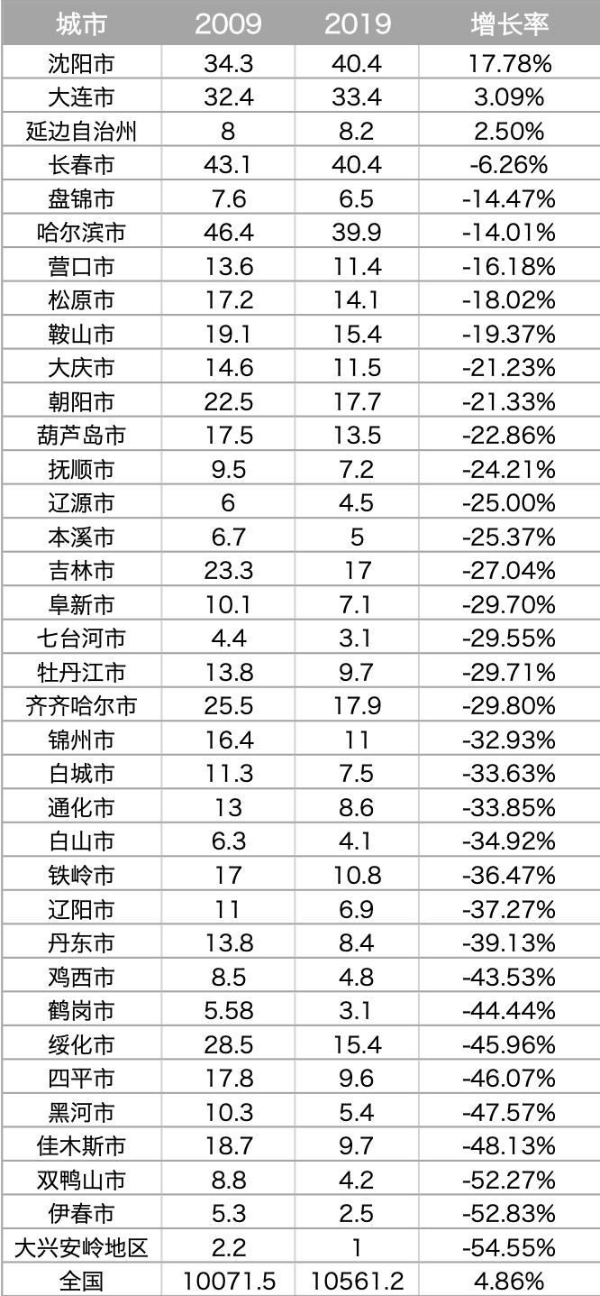横向比较,哈尔滨的城镇化率已经不低了,而且最主要的是哈尔滨市是东三省几个大城中,人口流失最为严重的城市。