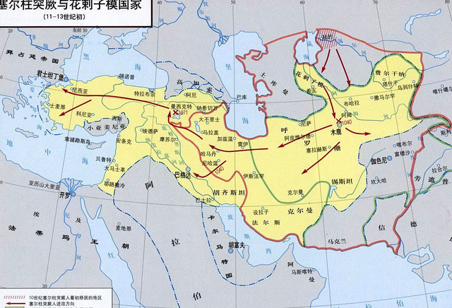 这些突厥人不断向西和向南发展,一度控制中东,建立了塞尔柱帝国。