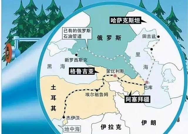那条管道起点为阿塞拜疆首都巴库(巴库油田),经过格鲁吉亚首都第比利斯,到达土耳其的杰伊汉港口,最后大部分卖给欧盟各国。