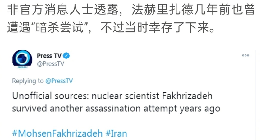 从摩萨德在以色列偷核材料的能力看,他的确有能力刺杀法赫里扎德。事实上,根据媒体的报道,近年来以色列情报部门一直在追杀伊朗的核专家,并且取得了实际成效,而且数年前法赫里扎德就曾被刺杀过。