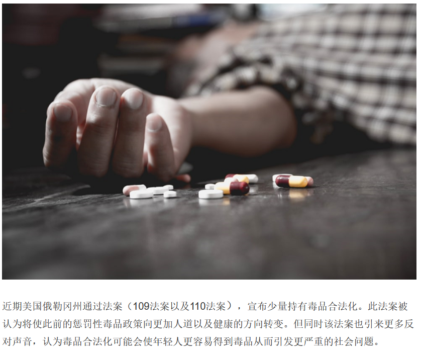 所谓的美国俄勒冈州、华盛顿州宣布“少量持有海洛因等硬性毒品”将被合法化,是根据一项将于2021年2月生效的法案,在美国俄勒冈州、华盛顿州等地,个人以非贩卖的目的持有违禁药品,所面临的惩罚不应超过罚款100美元的程度,贩卖毒品依然属于重罪。