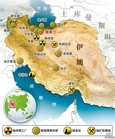 伊朗境内核设施分布如下图: