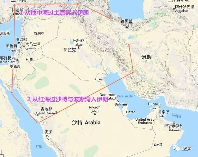 路线二,不过境伊拉克。