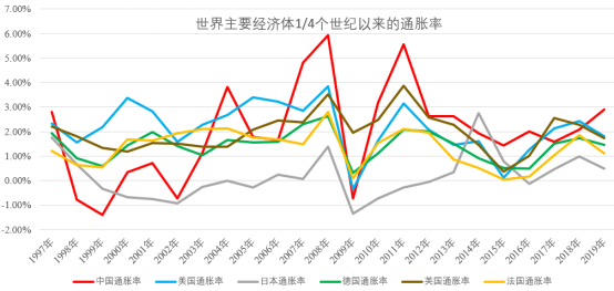 一直以来,当代世界各国官方的通货膨胀统计,不管是CPI(消费者物价指数)指数,或者是什么PCE(个人消费支出)指标,基本都是掩耳盗铃。因为,在当代经济中,整个社会绝大部分的钱,其实都用在资产买卖和交易中了,计算通胀的时候不包含资产的价格,就差不多相当于故意“抓住芝麻,扔掉西瓜”。按照当代央行和经济学家们的观点,CPI的年化增长在1-3%的时候,通常会被认为是“正常的”物价波动,根本不被认为发生了通货膨胀,只有超过3%到6%,才被认为是“温和的”通货膨胀,而只有CPI超过6%,才会被认为是真正发生了通货膨胀。所以,如果按照各国的官方统计数据,世界主要经济体(美国、中国、日本、德国、英国和法国),在最近的1/4个世纪里,除了个别年份外,基本都没有出现过通货膨胀现象。