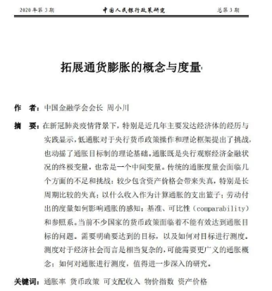 前几天,中国金融学会会长、前央行行长周小川在《中国人民银行政策研究》杂志上,发表署名文章《拓展通货膨胀的概念与度量》。在文章中周小川提出,通胀既是央行观察经济金融状况的终极变量,也常是一个中间变量,较少包含资产价格,会带来数据的失真,特别是长周期比较的失真,所以,我们需要一个更广义的通胀概念……终于,有央行系统内人士,不再掩耳盗铃。