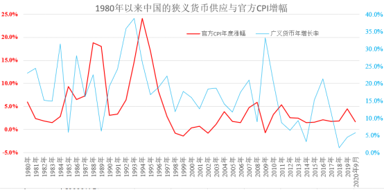 中国改革开放之后,一直到1990年代中期,因为货币超发是经常性的现象,所以每当货币发行过量之后,随后不久就是一轮严重的通货膨胀,即便是从官方统计数字来看,中国物价上涨也一直非常严重,CPI年化增长率超过6%是正常现象,10%、20%也并不罕见。也正因为普通消费品涨价都非常严重,中国最终出台了《中国人民银行法》,规定要用外汇作为印钞的抵押品。因为中国挣点儿外汇一直不容易,从源头控制印钞,相当于给通货膨胀的源头给扎了个口。1994年汇率固定之后,因为汇率低估,且人民币币值稳定,中国制造业打遍全球无敌手,中国又强制对所有出口企业实施强制结汇制度。所谓“强制结汇”,就是说你卖东西得到了美元(或欧元、日元等),除留下企业基本运营所需的外汇外,其余的外汇,银行都给你按固定汇率结算成人民币。这样一来,人民币印钞量刷刷刷的增长,带动广义货币和狭义货币也一路增长,大量的货币进入房地产领域,于是从2000年到现在,中国的房价(资产价格)一路暴涨——而与此同时,中国的官方CPI却一直被压低在5%以下……明明大家的住宿成本不断提高,而与房价有关的几乎所有东西价格都在一并升高,但CPI却一点儿都体现不出来。由于CPI不高,央行也自认为没有滥发货币,主观上可能也不想控制货币发行速度,结果就带来今天这样畸形的局面:资产价格畸高,债务泡沫充斥,货币泛滥,绝大部分人的生活压力越来越大。