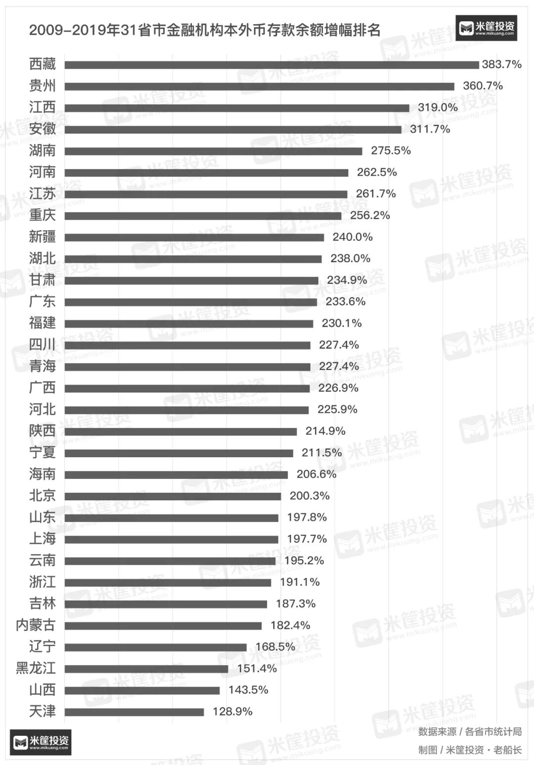 其中,西藏以383%的增幅高居第一。但众所周知,西藏的高增速,全因基数实在太小了。2019年,西藏的资金总量也不到5000亿,全国垫底。