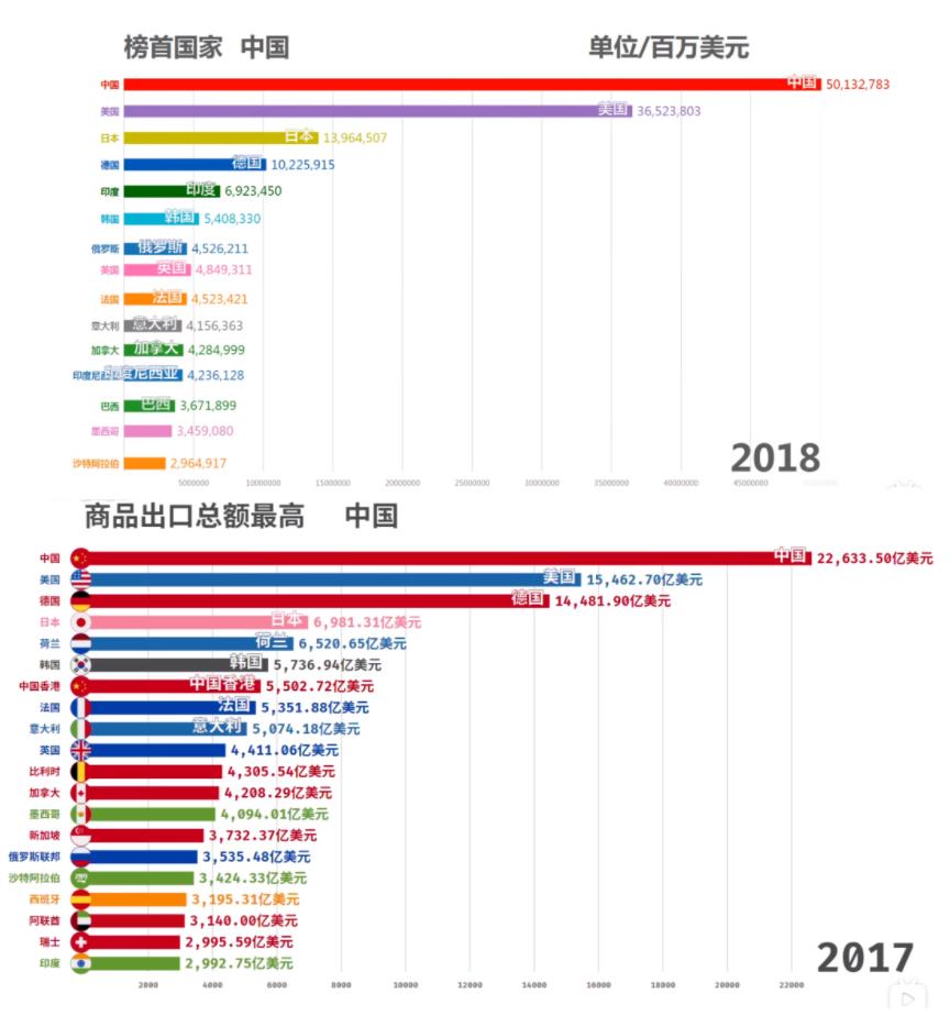 中国是一个完整的世界,14亿人口,全球最大的工业国,拥有最完整的工业体系,工业总产值超过美国、德国、日本之和,超过整个欧洲之和……中国还是全世界120个国家的最大贸易国,中国进口比重占全球11%,出口占全球比重为14%,美国如今只是20个国家的最大贸易国,完全不是一个体量。