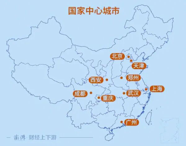 目前,我国共有9大国家中心城市:北京、上海、广州、天津、重庆、成都、武汉、郑州、西安。