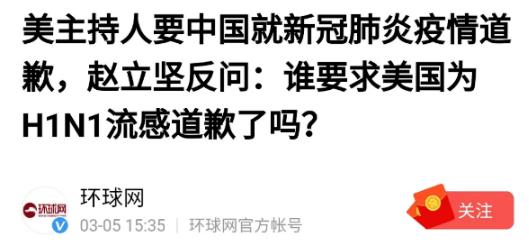 “中国在全球疫情中为其他国家提供帮助,是为了弥补自己的过失。”