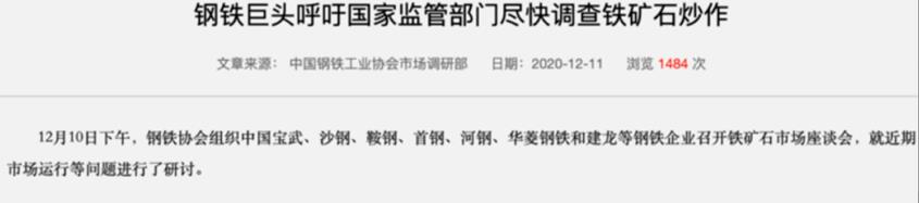 这么一来,成本涨了不少,成品价格没咋涨,钢铁公司就都扛不住了,上周中钢协带头呼吁监管严查这里面的猫腻。