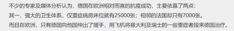 于是美吹一败涂地的同时,德吹还在努力,他们吹德国的抗疫模式才是王道,他们吹德国的工业水平、生产力水平根本不会导致医疗系统被击穿,德国依旧是欧洲之光......那段时间吹得天花乱坠,搞得我要去青岛下水道寻找德国工程师留下的油布包了。