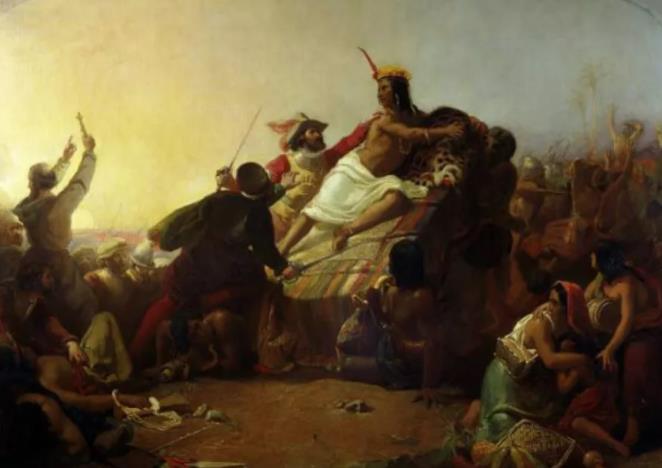 印加帝国主要的兵器是绑着燧石刀片的木棒,生产力太落后,社会组织形式还很原始,最糟糕的是,印第安人当时没有见过马这种生物,直接被骑兵吓坏了。