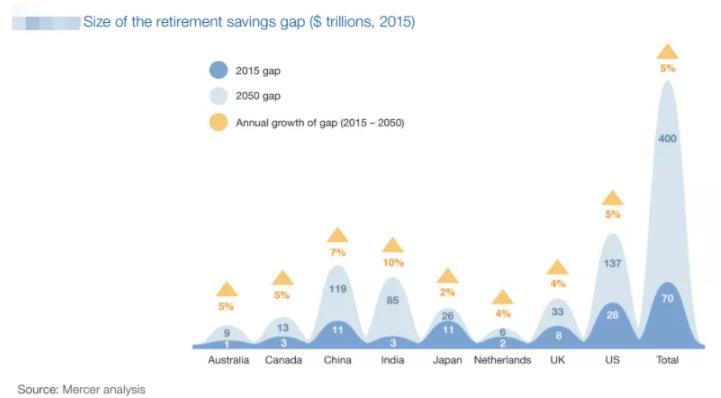 报告说,到2050年,哪怕是目前养老金存储最多的6个国家(美国、英国、日本、荷兰、加拿大和澳大利亚),也会产生224万亿美元的缺口。