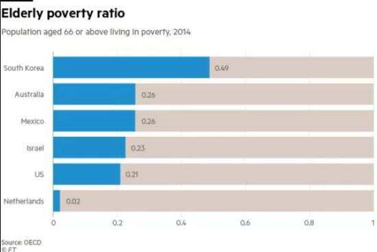有调查说,韩国65岁以上老人,将近一半生活在贫困之中(就是不到家庭收入中位数1/2)。