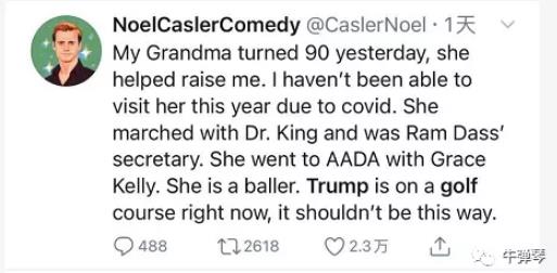 我的奶奶昨天90岁生日,她将我拉扯大。但因为病毒,我今年都还没能去看望她。她曾经和马丁·路德·金一块游行,她是拉姆·达斯(美国心灵导师)的秘书……她是一名芭蕾舞演员。但现在,特朗普却在打高尔夫,不应该这样啊!