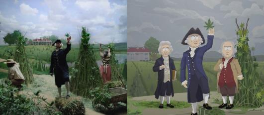 在toG端业务搞得风生水起时,大麻企业也没忘记toC端洗脑。除了“大麻比酒精对人的伤害更小”、“大麻有利于缓解高血压”这些基础操作外,2019年,大麻独角兽MedMen制作了一则宣传大麻“正常化”的视频短片,开头一幕就是美国国父华盛顿仰望大麻,以此暗示种大麻是美国历史文化的重要组成部分。