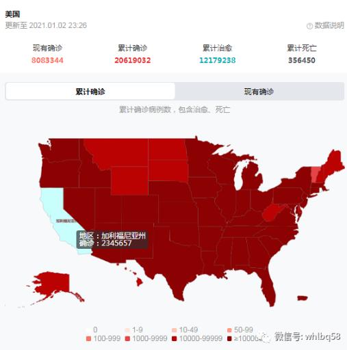 根据约翰霍普金斯大学统计,截止当地时间1月1日,美国累计确诊新冠病例已超过2012万人,死亡人数超过34.7万人。