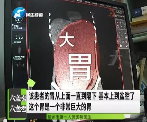 通过CT检查后,医生都惊呆了,说:“从医30年,从未见过这么大的胃。”