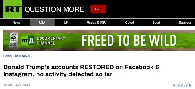 据环球网转引“今日俄罗斯”1月16日的最新消息,脸书公司悄悄恢复了美国总统特朗普的脸书账户和Instagram账户。美国1月6日国会骚乱后,特朗普在这两个社交平台上的账户被冻结,当时脸书声称至少冻结账号两周,并宣称要彻底封杀。然而,这才刚刚过去不到10天,他们就恢复了特朗普的账号。