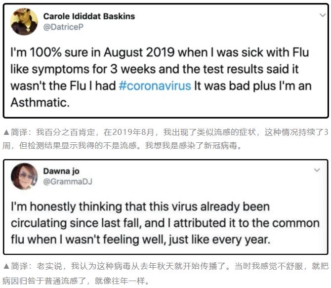 而后来的一些数据和调查结果,似乎也正在印证我的感觉和疑虑是有迹可循的。截止2020年3月美国新冠肺炎大爆发前,短短半年时间,仅美国本土死于那场莫名其妙的“超级流感”的普通美国民众就超过了20000人,这是何其的骇人听闻?!而且,许多美国民众也都在社交网络上公开表示:早在2019年夏天和秋天,在那场超级流感中,自己就出现了新冠肺炎的症状。