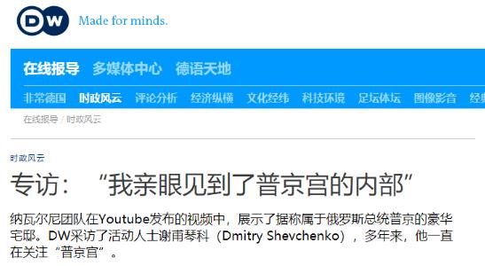 此后纳瓦尔尼团队中的谢甫琴科在接受德国之声访问的时候,声称“亲眼见到了普京宫的内部”