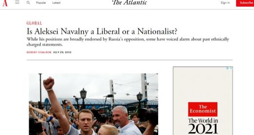 纳瓦尔尼的主张并不符合欧美的胃口,毕竟早在2013年,《大西洋周刊》就直接定性纳瓦尔尼是“民族主义分子”,“种族歧视者”
