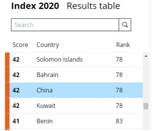 一个名为“透明国际”的NGO组织,最近发布了该组织一年一度的全球“清廉印象指数”榜单。