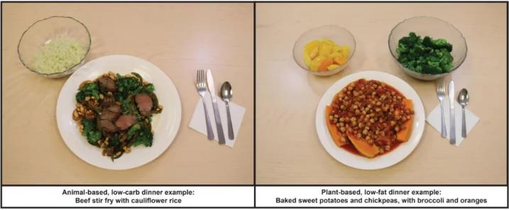 首先让他们吃以植物性食物为主的低脂饮食,或以动物性食物为主的低碳水化合物饮食两周。然后立即接受两周的交替饮食。
