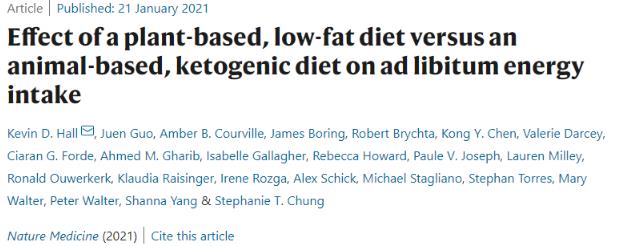 "尽管吃了大量高碳水化合物的食物,导致血糖和胰岛素明显波动,但吃植物性低脂饮食的人却出现了显著的卡路里摄入量减少和体脂下降,这对高碳水化合物饮食本身会导致人们暴饮暴食的观点提出了挑战。另一方面,以动物为基础的低碳水化合物饮食尽管脂肪含量很高,但并没有导致体重增加。"霍尔说。