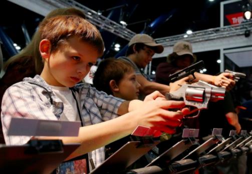 而美国民众拥枪3.93亿支,有48%的美国人,在有枪的家庭长大。