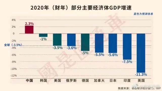 2020年,全球经济衰退了3.5%,中国是全球主要经济体中唯一实现正增长的国家,全年GDP增长了2.3%。英国则是最惨的国家之一,GDP衰退锐减11.3%,是德国5%、日本5.6%衰退幅度的两倍多。