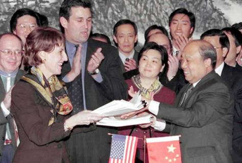 1999年,中美就中国入世达成双边协议,美国支持中国加入世界贸易组织。