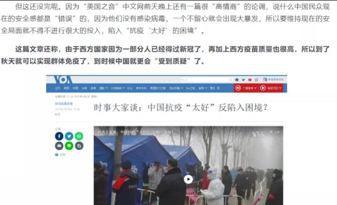 步入2021年,虽然新冠疫情依然在继续蔓延,但是总算是传出了一些好消息,各个主要国家,都开始了不同程度的疫苗接种;而突变的病毒,暂时对于疫苗的影响,还在可控阶段。只不过,在局势开始缓缓好转的阶段,我们又看到了一些并不陌生的奇谈怪论。部分西方媒体又开始对于我国抗疫工作进行指责,不自由,不尊重人这种话题已经耳熟能详了,最近就连“中国的抗疫与人类文明格格不入”这种奇谈怪论,也被摆在了台面上来。(下面这个报道里提到的文章经我们验证之后,发现实际内容比这里总结的更为不堪得多)