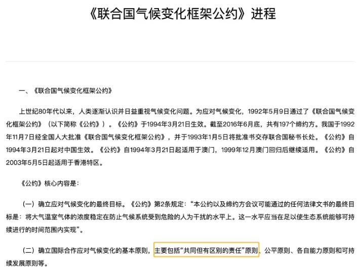 为了平衡发达国家和发展中国家,1992年,世界各国曾经达成一条“共同但有区别责任”原则。