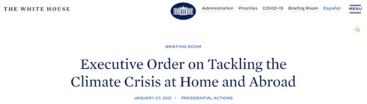 1月27日,继签署了重返《巴黎协定》的行政令后,拜登又签署了一个关于气候变化具体的行政令。