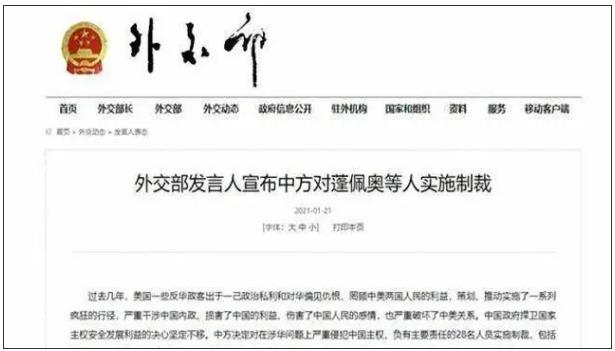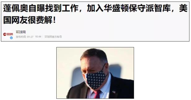 在2021年1月21日的外交部发言人宣布制裁蓬佩奥等28名美国政客之后,截止到2月初为止,至少已经有两人找到了新工作。