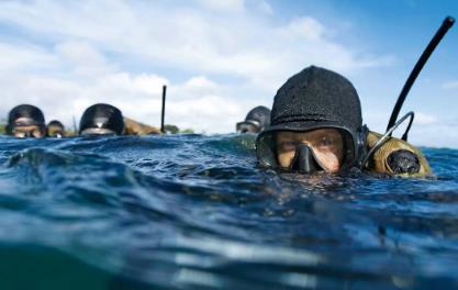 在美国夏威夷珍珠港,参加“环太平洋”军演的澳大利亚海军士兵准备进行水下排雷和侦察演练