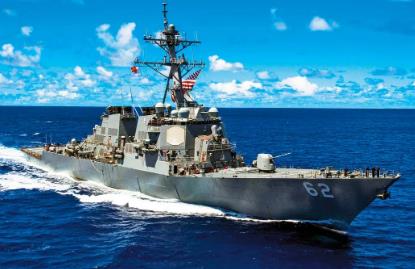 在太平洋海域拍摄的美国海军第七舰队“菲茨杰拉德”号驱逐舰
