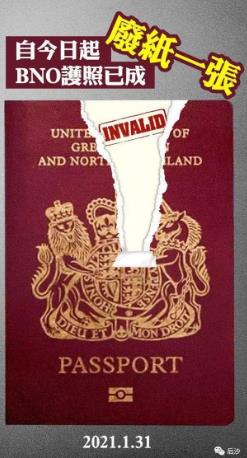 从1月31日起,BNO护照已经作废,也就说从此无法再用这张护照入境香港,同时香港明确不承认双重国籍,如果一个人申请了英籍,就视为自动放弃中国国籍。