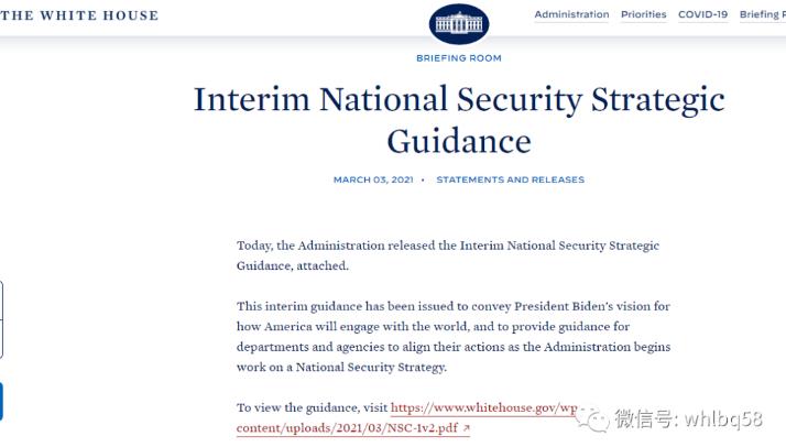 3月3日,美国白宫发布了拜登政府的《临时国家安全战略指南》,这是拜登新政府发布的第一份美国全面应对国际国内局势的政策性指导文件,作为当今全球唯一的超级大国,这份文件无疑会引起国际社会的高度关注,更会就文件中涉及到本国的部分加以深入解读。