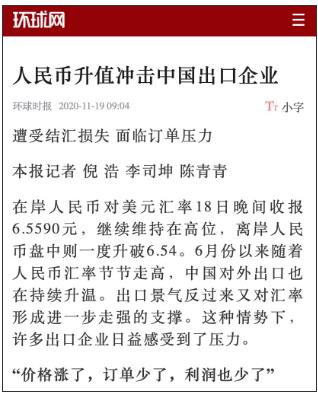 央视新闻在人民币升值的专题报道里采访过一个做外贸的老板,他有一句话说的让人听了特别心疼: