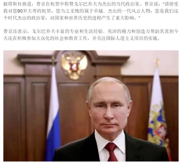 所谓老而不死,不知不觉,戈尔巴乔夫也九十岁了,活得比苏联长寿得多,来得及再看一个时代的开启和落幕。在戈尔巴乔夫九十岁生日的时候,普京和拜登都发了贺电,两份电文都耐人寻味。