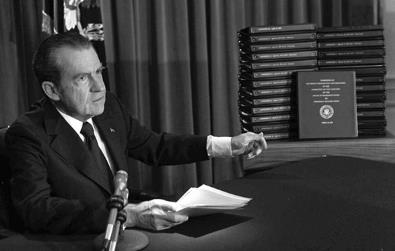 至此,尼克松已众叛亲离,无力回天。8日晚,他在白宫发表辞职声明,黯然谢幕。