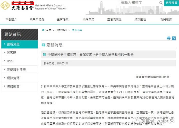 21日台当局陆委会就中美会谈特别发表了下面这份声明: