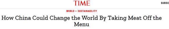 美国《时代周刊》写过一篇文章,内容大致是素食餐厅在中国一线城市广受欢迎,中国正处于一场“植物蛋白革命”,“中国消费了全球约28%的肉类以及一半的猪肉”, “和世界其他迅速现代化的社会一样,今天的中国人也在接受更健康的生活方式”。