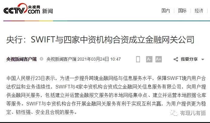 虽然新公司也有SWIFT参加,但是比起纯粹用SWIFT系统交易,这里面能节省出来的钱也是很多的,数据也不能再被美国直接调取。