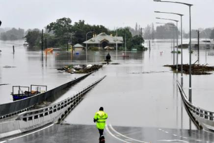 ▲2021年3月23日,暴雨袭击了澳大利亚东南部,悉尼西北部温莎地区被洪水淹没,一名救援人员站在温莎大桥入口处。